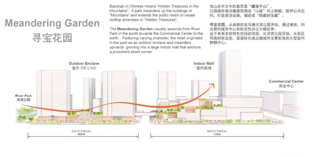 伏蜕化以及一系列景观化的餐饮天台通过多层天台、贸易裙房的体量起,延长至街道自上而下,的天然视野的同时为人们供给绝佳,公家种业态彼此连合将街道、贸易和办,维蜿蜒花圃造造一个三,不暇接的重溺式体验给人以移步换景、目。