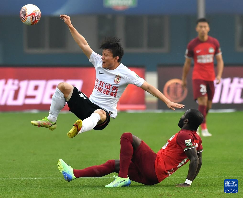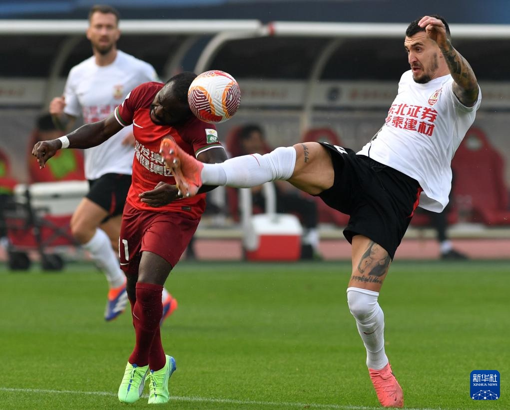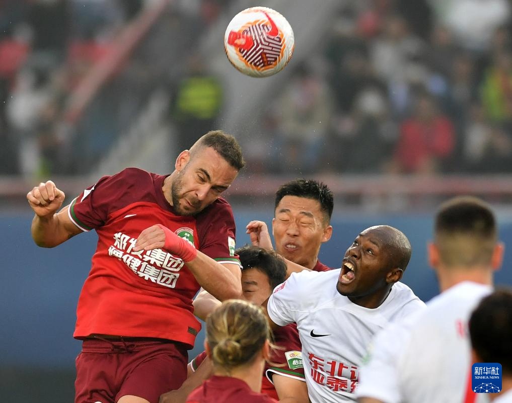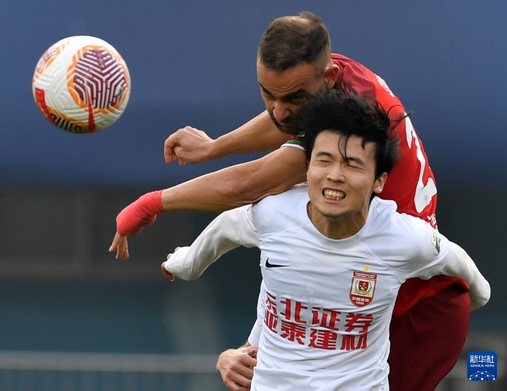 27日10月,后)与长春亚泰队球员李申圆正在角逐中争抢头球河南俱笑部酒祖杜康队球员尼曼贾·科维奇(。