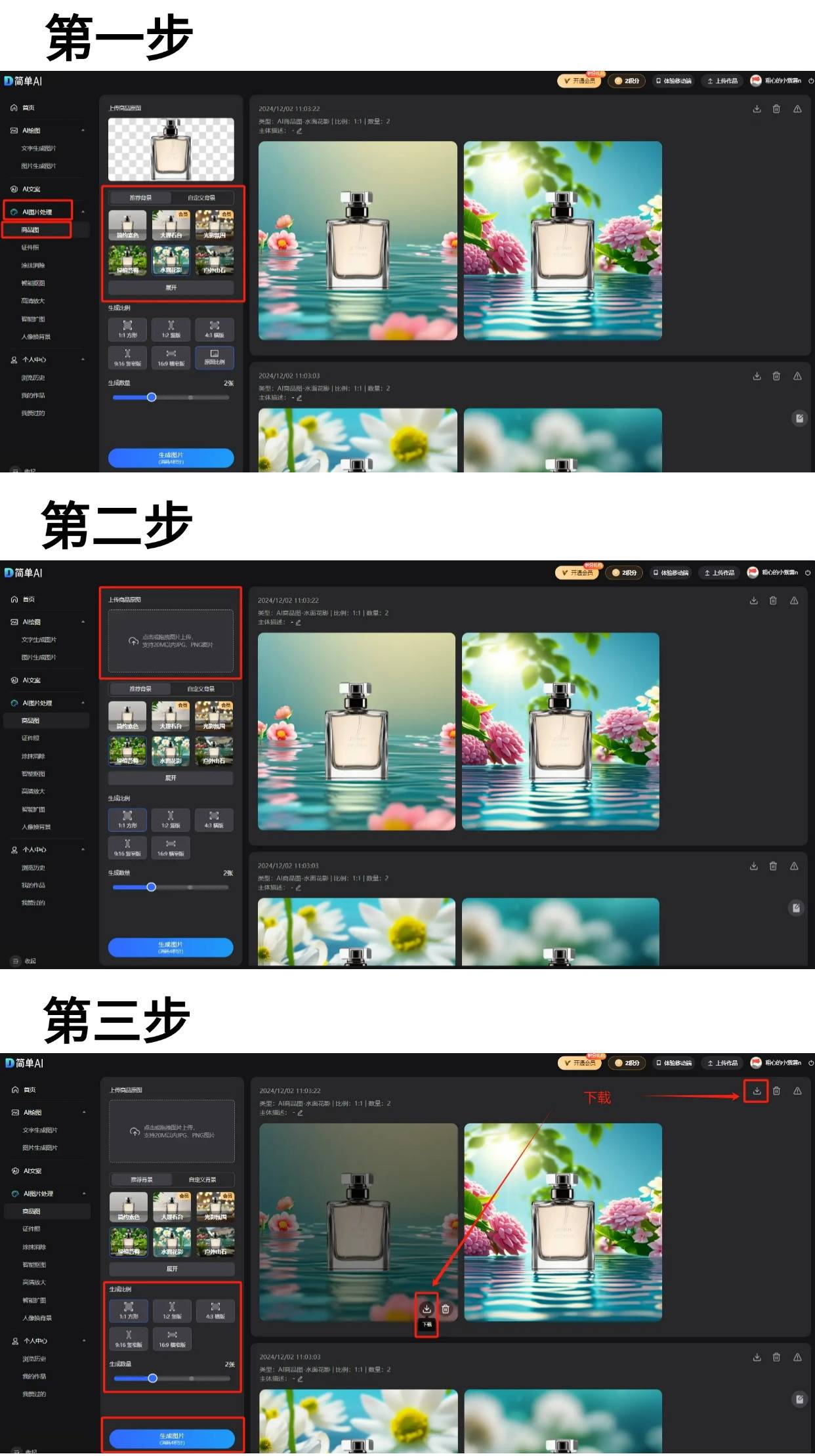 成比例及天生数目第三步:遴选生,成图片”点击“生,换靠山一键!载图标点击下,宝主图AI商品图换背景黑科技助力、视频封面、海报创造等各类电阛阓景中就可省得费下载啦~你可能将这些图片用于淘,的顾客体贴吸引更多。