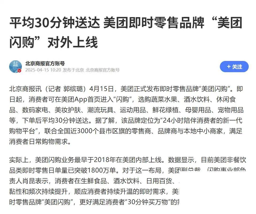 悉据,线下消费场景举办升级美团闪购重要是针对,时随时随地的购物任职为消费者供应24幼,高效的贩卖渠道和营销东西同时也为商家供应便捷、。